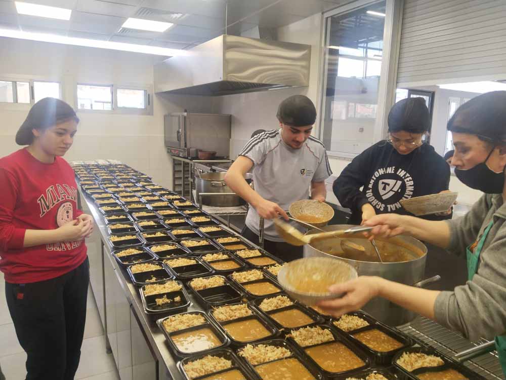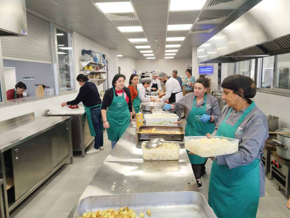 Mehr als 1.200 warme Mahlzeiten werden hier täglich frisch zubereitet und einerseits vor Ort an Hilfe Suchende ausgegeben sowie andererseits auch über lokale Pfarren an Bedürftige verteilt.